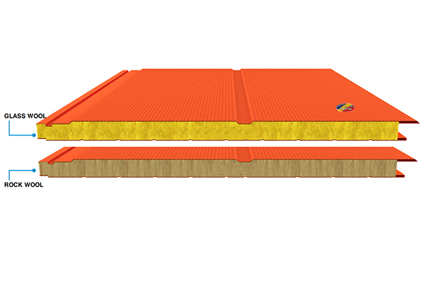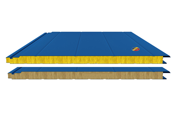 • Panel tường ngoài Glasswool/Rockwool (bông sợi thủy tinh/bông khoáng). Sản phẩm được dùng làm tường trong và trần, lớp giữa là vật liệu cách nhiệt bông sợi thủy tinh/bông khoáng, 2 mặt ngoài là thép mạ nhôm kẽm, mạ màu hoặc Inox. Sản phẩm chống cháy hữu hiệu, có độ bền cao, sử dụng được trong thời gian dài.